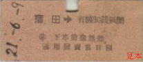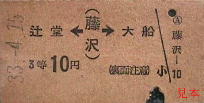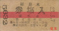 軟式特殊乗車券の硬券。昭和19年に戦時特例として、東京近郊で金額式軟券(軟式特殊乗車券)が使用された。基本的には軟券だが、一部高額券は硬券で発行されていた。