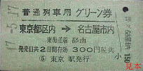 特定都市内発着の普通列車用グリーン券。普通列車グリーン券の常備区間としては最長の部類に当たる。