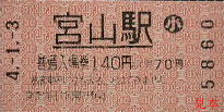 JR化後の券。相模線各駅にも券売機が進出し、長らく無人駅だった「宮山」でも入場券が再び買えるようになった。