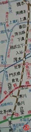 (厚木から右下に分岐している「中新田」は神中鉄道の「厚木中新田口」であり、相模鉄道の「中新田」停留所とは異なる)
