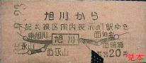 上段、旭川の券は初期様式を踏襲している。上段右は昭和34年に西永山駅が開設(仮乗降場から格上げ、昭和42年廃止)された為、券面が変更されている。