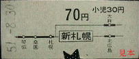 昭和48年9月9日に開業した新札幌で発売された券は、過去の様式とは全く異なる地図が採用されている。