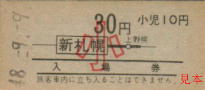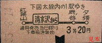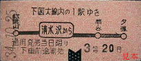 この時期の券は各駅で不統一の様式変更が行われており、この券の様に同じ駅・同じ様式でも時期によって微妙に異なる券が使用されていた。