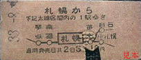 北海道で発売された初期様式の券で、列車区間の為通用期間が2日になっている。