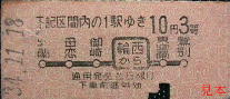 昭和33年10月から列車区間でも近距離は通用区間が「当日限り」となった。