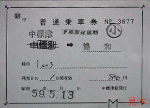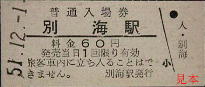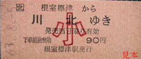 中標津発行の補充片道乗車券。発駅が中標別となっているミス券である。