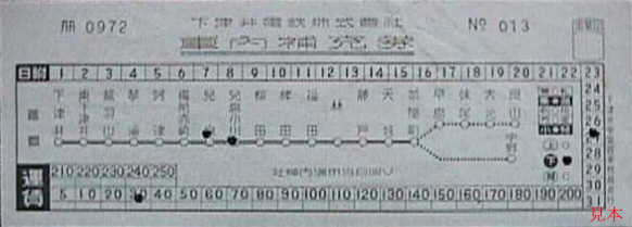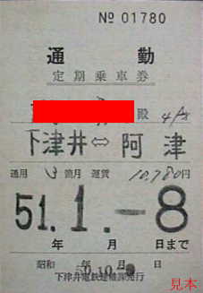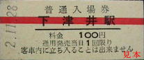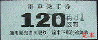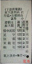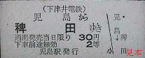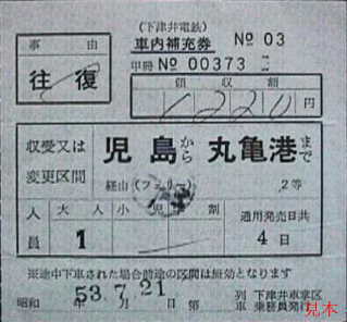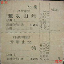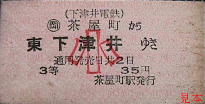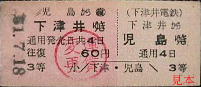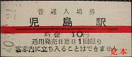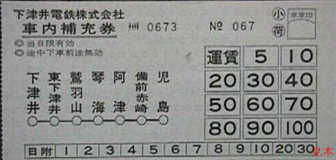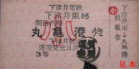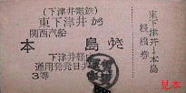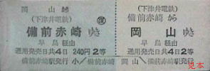 晩年には金額式半硬券となった。右は最晩年に発行された券で、児島と下津井で同様式の券が使用されていた為、発行駅は判別不能。