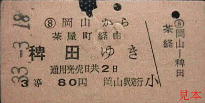 上段は昭和40年代の地図式車内補充券。宇野線の主要駅も入っている。