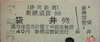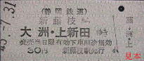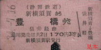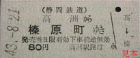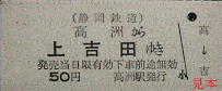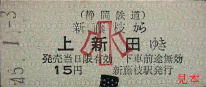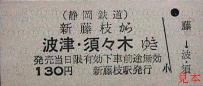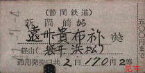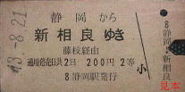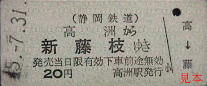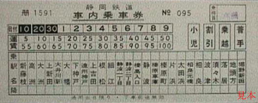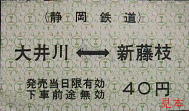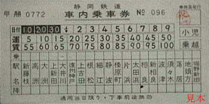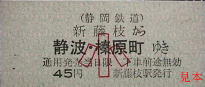 新藤枝側の乗車券。下段中央の小児券は他の二枚と影文字若干が異なっている。