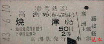 国鉄からの連絡乗車券。静岡から相良着、新相良着の券は運賃が同額だが、別々に用意されている。大井川着の券は末期のもの。