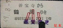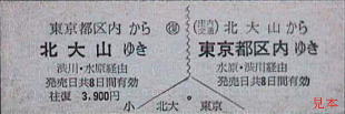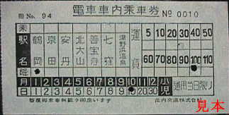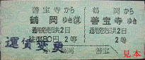 等級制時代の乗車券。三等券は上部に社名表示があるが、二等券は表面に社名表示がない。