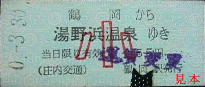 モノクラス後の乗車券。表面下部に社名表示がある。