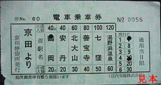 京田停留所発行の軟券乗車券。おそらく委託駅だったのであろう。