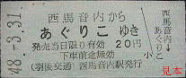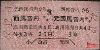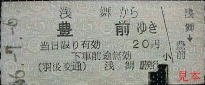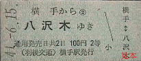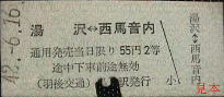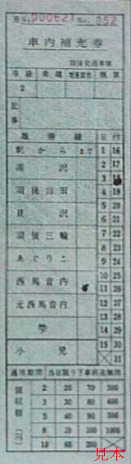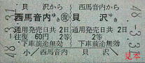 貝沢からの車内片道乗車券。準常備券の様に最下段が着駅になっている。
