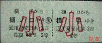 樋ノ口〜横手の往復乗車券。B型の小児常備券である。