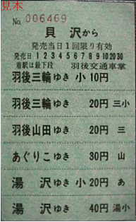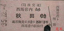 羽後交通となってからの乗車券。相互矢印式も使用されていた。