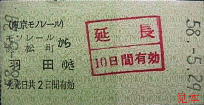 左は京王帝都電鉄(現、京王電鉄)の券、中央は帝都高速度交通営団の券、右は北海道拓殖バスの券。