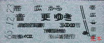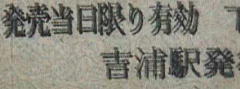 こちらの羽後交通の乗車券は、影文字が縦にずれている。