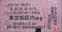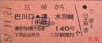 盲腸線の終点、三保から分岐駅の清水までの乗車券に「千種経由」と表示がある。