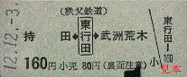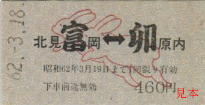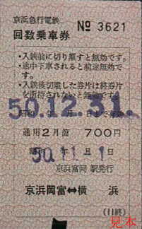 回数券の乗車区間「京浜富岡」が「京浜岡富」となっている。
