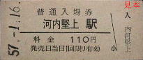 小児片の駅名を間違えた例。左から「河内堅上」が「内河堅上」、中央「越後中里」が「後越中里」、右「京都」が「都京」となっている。