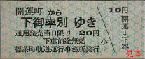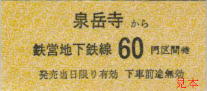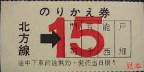 軌道線乗換券のミス。乗り換え先停留所の「熊西」が「能西」になっている。