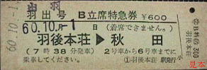 列車名の「出羽」が「羽出」になっている。流石に気が付いて訂正がされているが、とんだ完全常備券である。