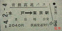 左は「入場券」が「入場場」、中央「自由席特急券」が「白由席特急券」、右「常磐高速バス」が「常盤高速バス」になっている。