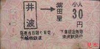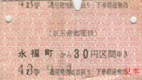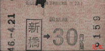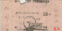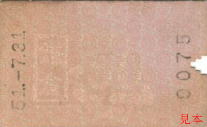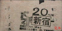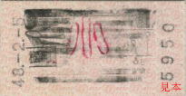 券紙の送り量ががズレた券、新橋と寺田町の券は、券面下部注意書きが券面上部にずれ込んでいる。