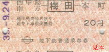 梅田の券はズレが酷くなり、駅名表示にまで割り込んでいる。