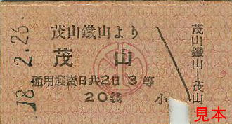 茂山鉄山(もさんてつざん)から茂山ゆきの乗車券と、西上(せいじょう)から茂山鉄山ゆきの準常備乗車券。