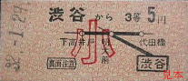券売機券でも地図式乗車券が発売されていた。代々木八幡の券は昭和45年発行だが、「2等」の表記が消されないまま使用されている。