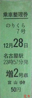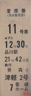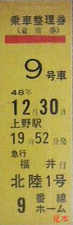 津軽2号と北陸1号の券は発駅着席券から乗車整理券に改称された直後の為、券種が連名になっている。