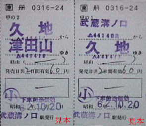 以前は、B型硬券(下左)が一般的だったが、現在はA型軟券(下右)や、大型軟券も使用されている