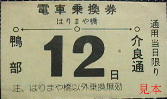 車内用は「車内乗換券」と称した軟券だが、連絡船用には「船内乗換券」と称した常備硬券も存在している。