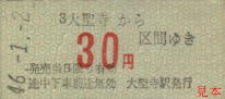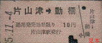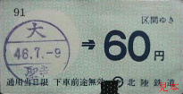 国鉄連絡乗車券。自社線内用とは異なる自社地紋を使用している。
