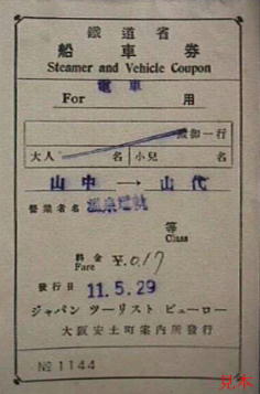 ジャパン・ツーリスト・ビューロー(現、日本交通公社)発行の鉄道省委託発行乗車券。