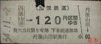 一般式乗車券。右の券は「加悦谷高校前」が「加悦高前」に省略されている。