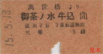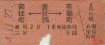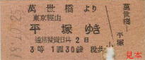 休止数日前、汽車区間用のB型一般式券。昭和17年頃から用紙節約のために使用されていた。