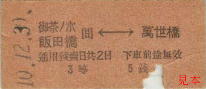 右は鉄道省(大正9年から)の大正末期様式券。着駅の「牛込」は昭和3年「飯田橋」開業に伴い廃止。