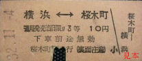 国鉄・東横線共通乗車券。国鉄根岸線・東急東横線の横浜〜桜木町間に限り選択乗車が出来る券が発行されていた。