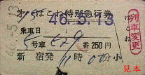 列車が指定されているのが大きな特徴で、昭和40年5月1日以降は1等車(7号車)も自由席扱いとなったため、一等券も存在する。